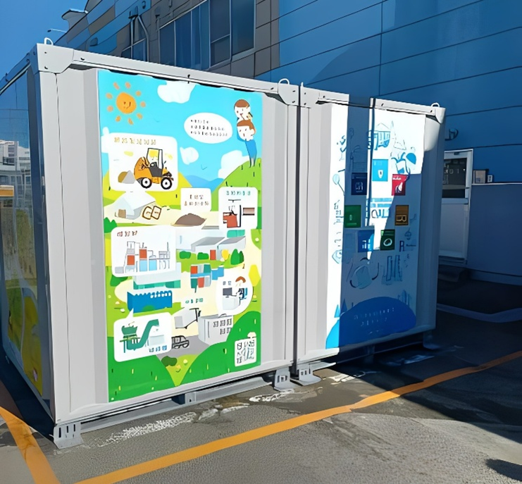 先日、弊社のお取引様に設置している廃棄物収納庫に広告看板を